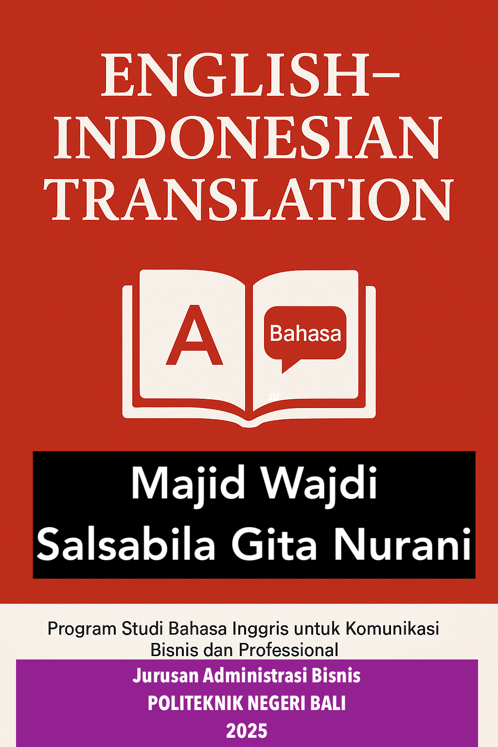 English-Indonesian Translation is an essential resource tailored for Indonesian students learning English as a foreign language. Designed to bridge the gap between the two languages, this book focuses on practical translation techniques and offers a structured approach to understanding the nuances of both English and Indonesian. Through a series of clear explanations, engaging exercises, and authentic examples, students will develop the skills necessary to translate a wide range of texts, from everyday conversations to more complex academic and professional materials. The book emphasizes key areas such as vocabulary, sentence structure, idiomatic expressions, and cultural context, providing students with a well-rounded understanding of both languages. It also highlights common challenges in translation and offers tips to overcome them, making the process both engaging and informative. Whether for classroom use or self-study, this book aims to enhance students' translation abilities while fostering a deeper appreciation for cross-cultural communication.
